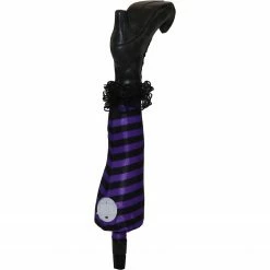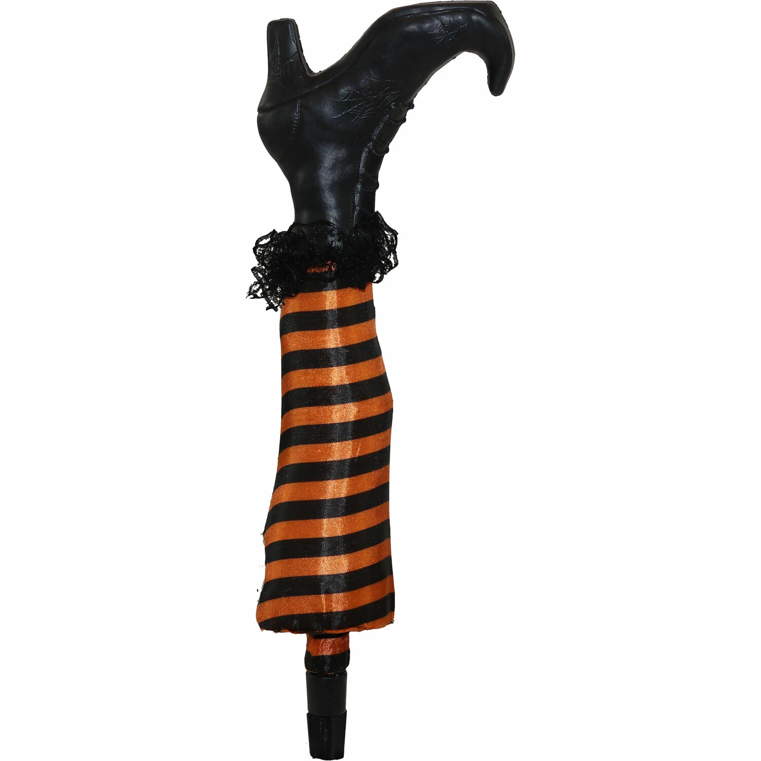 - Prelit witch legs feature striped stockings, pointed boots, and frilly black socks