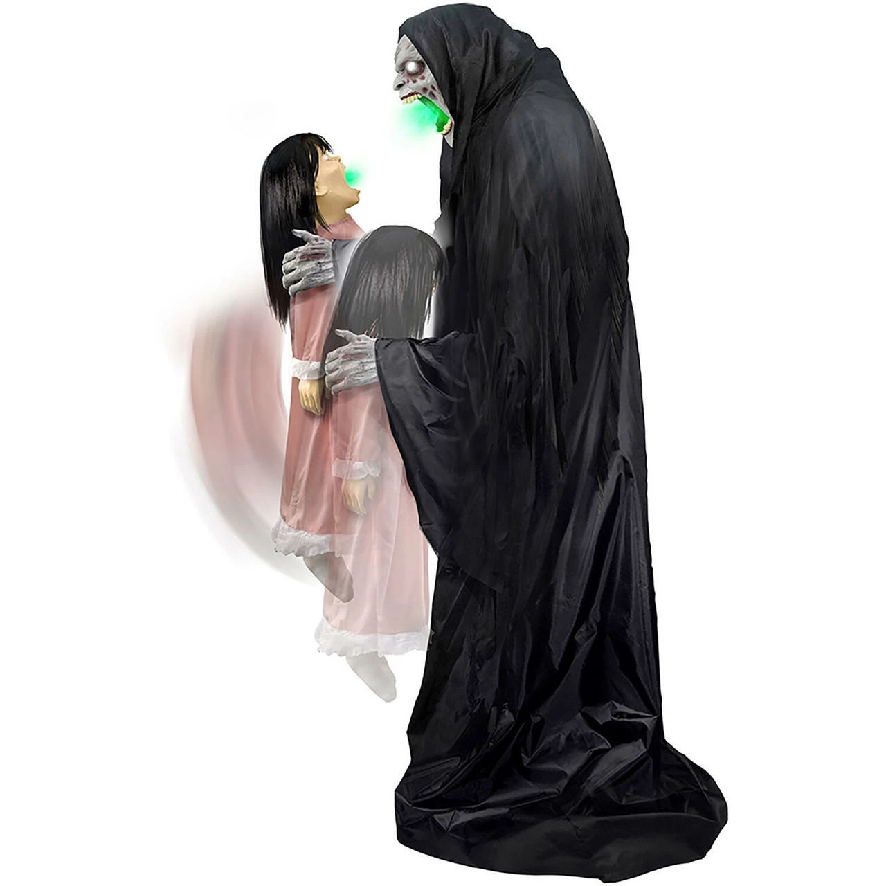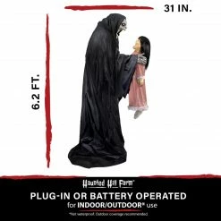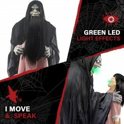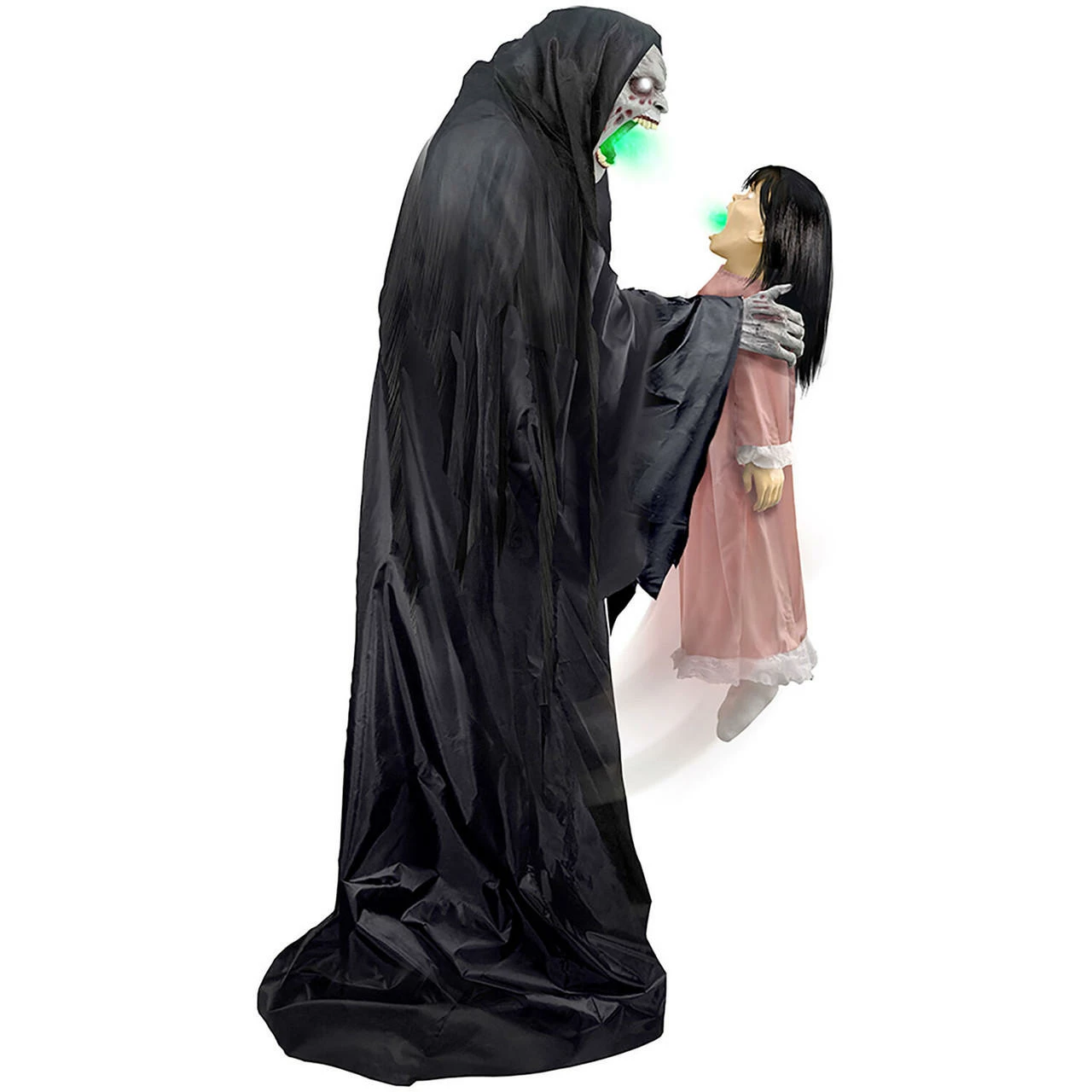 - 6-ft. tall Soul Sucker with his villainous voice and innocent child victim will terrify your trick-or-treaters
