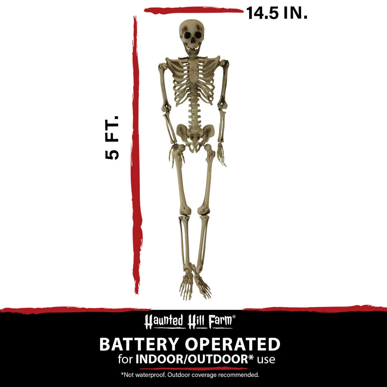 - 5-ft. skeleton for indoor or covered outdoor display