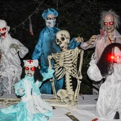 Be afraid. Be very afraid of Haunted Hill Farm’s Lawn of the Dead Collection. These blood-curdling creatures are sure to terrify any trick-or-treaters, co-workers, or customers. Igor, the skeleton is bad to the bone. Or, in this case, bones. His life-sized body will terrify visitors with its sharp skeleton hands and hollow-eyed skull. Igor’s arms bend into various petrifying poses for endless scare possibilities. Place his dirtied, lean figure on your lawn to give Igor the appearance of emerging from the grave or hang him above your bowl of holiday treats. Only the bravest of guests will dare approach this sinister skeleton. Don’t be fooled by his toothy smile; Igor feasts on screams.