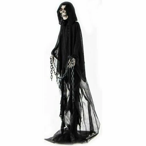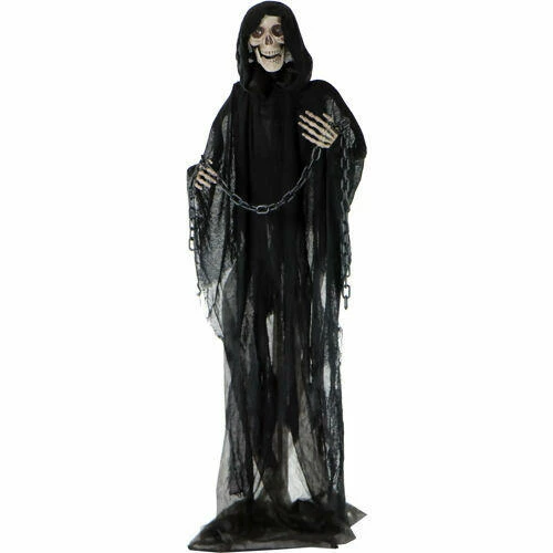 - Animated 5-ft. moaning grim reaper holding a plastic chain for a multitude of indoor and outdoor display ideas