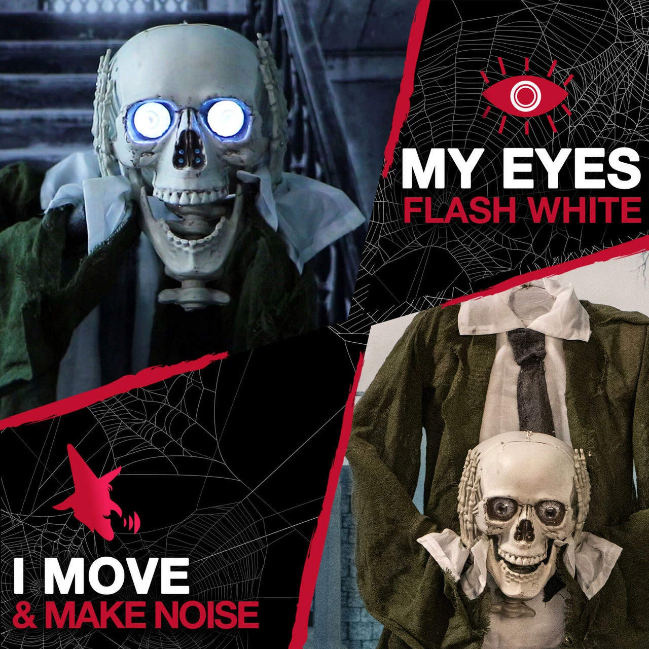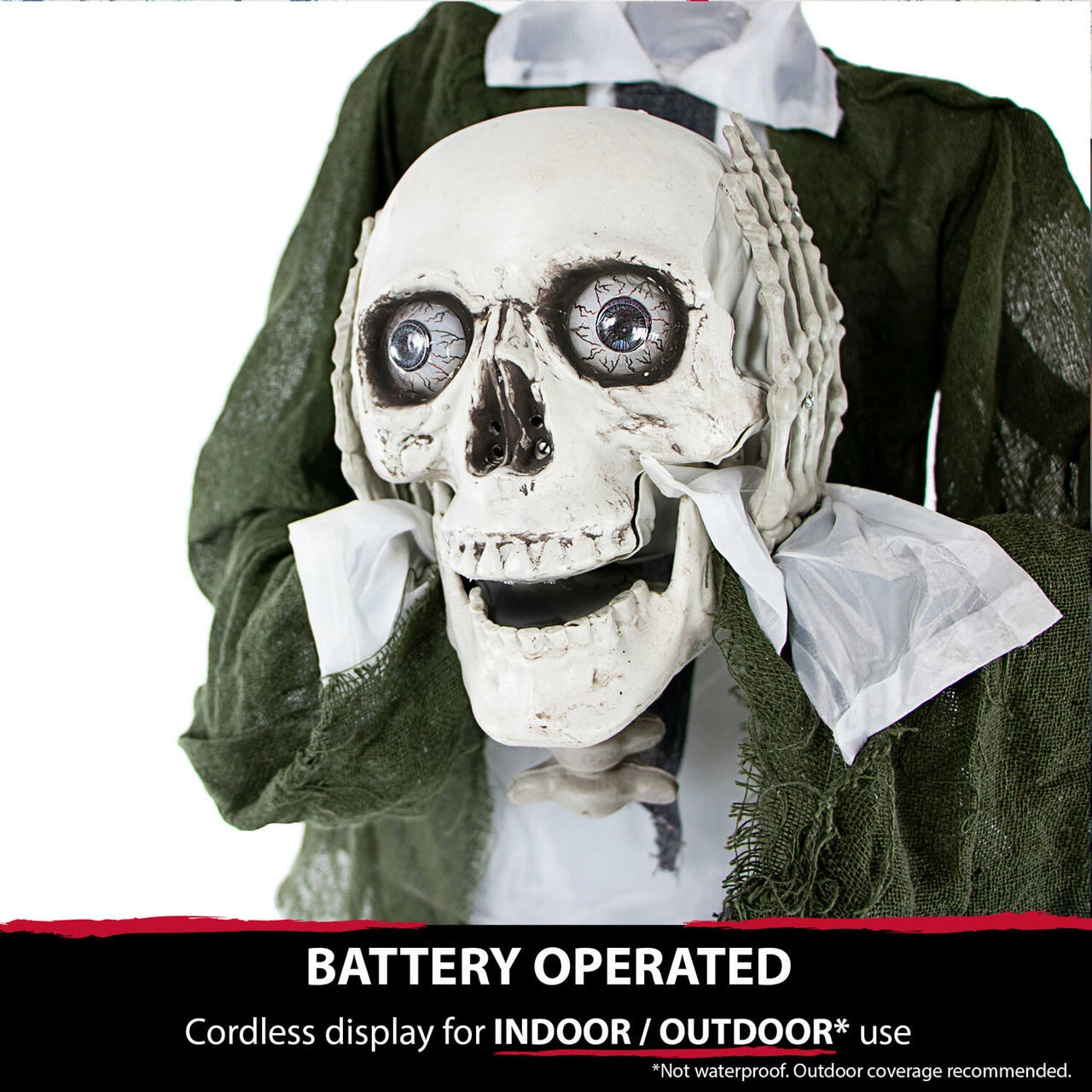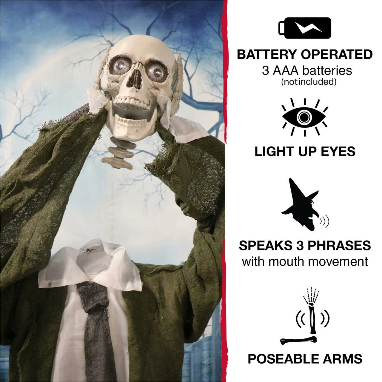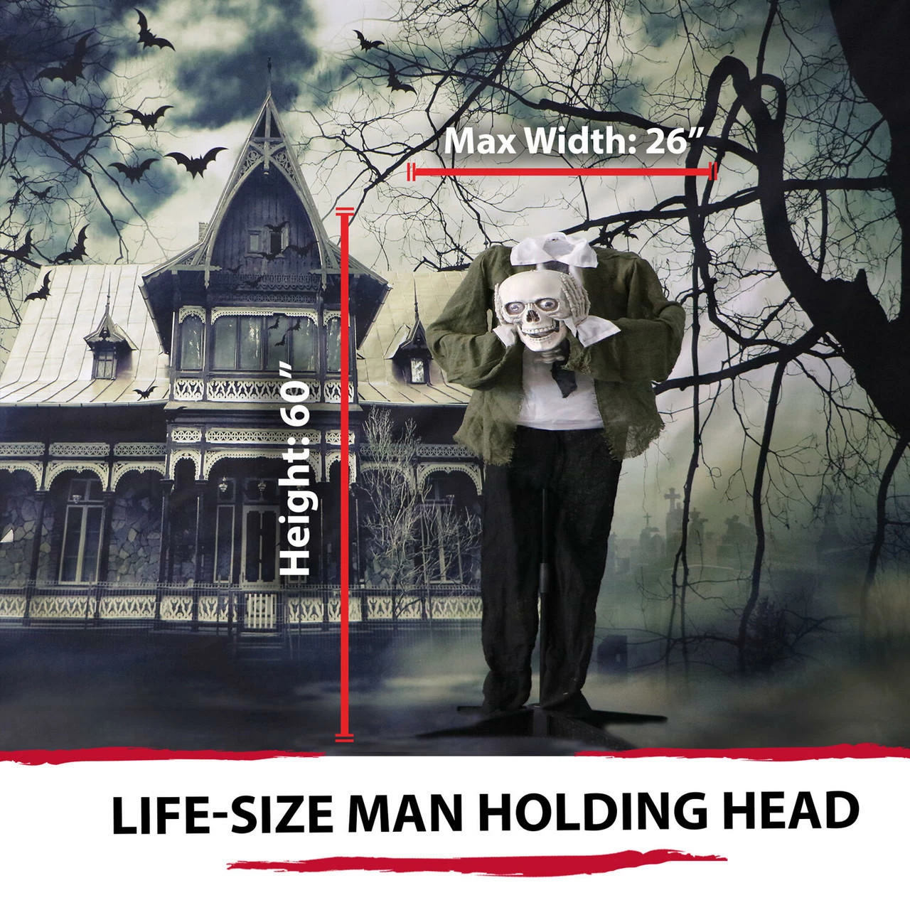 - Animated 5-ft. headless man holding a talking skull for a multitude of indoor and outdoor display ideas