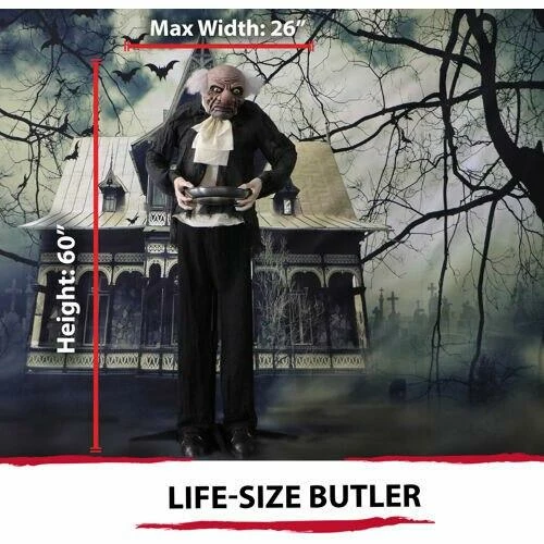 - Animated 5-ft. moaning butler holding a silver tray for a multitude of indoor and outdoor display ideas