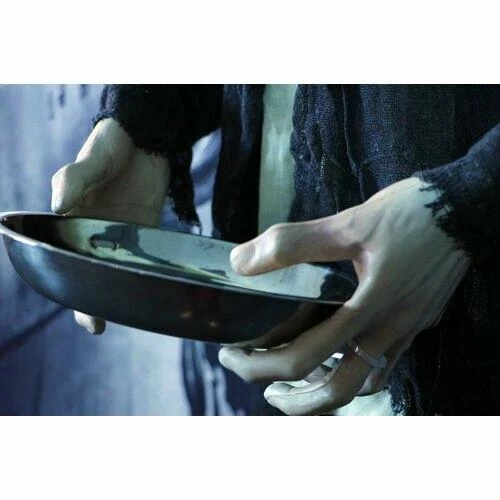 - 9.5-in. silver metal tray is an ideal prop to hold candy or other ghoulish tricks and treats