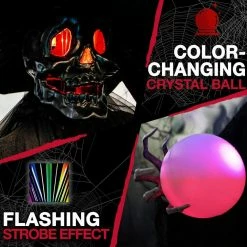 - Multi-color crystal ball lights up with strobe effect (can be operated with or without skull lights)