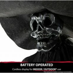 - Life-size Halloween figure includes a sturdy stand with a broad base for standing display