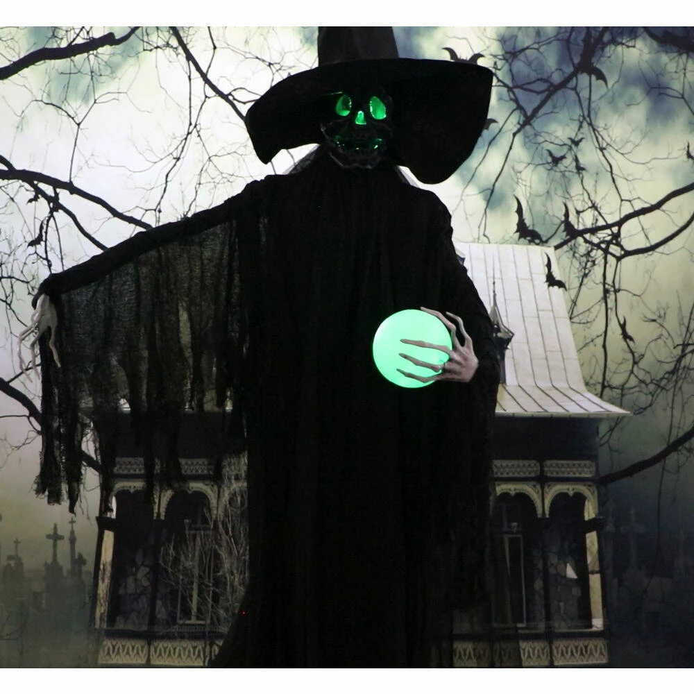 - 7.5-ft. phantom witch with a crystal ball for a multitude of indoor and outdoor display ideas