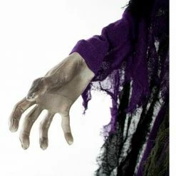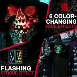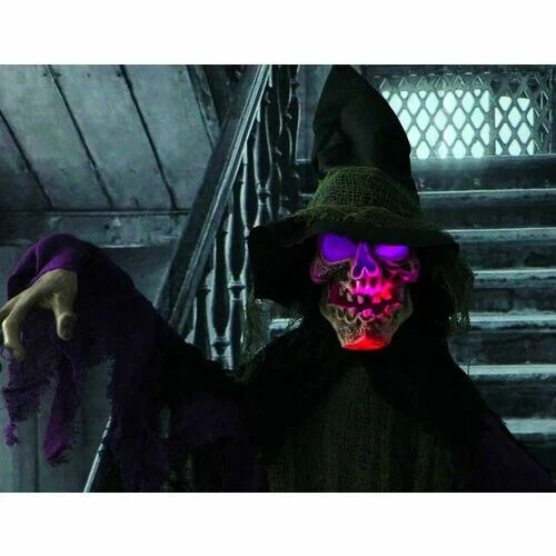 Enter, if you dare, into the horrifying world of Haunted Hill Farm. Our life-size, animated creepy creatures are just what you need to turn your home into the scariest haunted house on the block. Our wide choice of monsters, each more nerve-wracking than the last, is sure to create a hair-raising cast for the creepiest display you can imagine. What unearthly creature is this? It’s our Skeleton Witch with a 6-function multi-color light. Just click the switch located at the back of her hat for different colorful effects. Choose from red/green/blue strobe effect, continuous slow color change from red to green to blue, steady purple, flashing red, flashing green or flashing blue. For thrills and chills so frightening your neighbors will run shrieking in horrendous delight, count on Halloween decorations from Haunted Hill Farm.