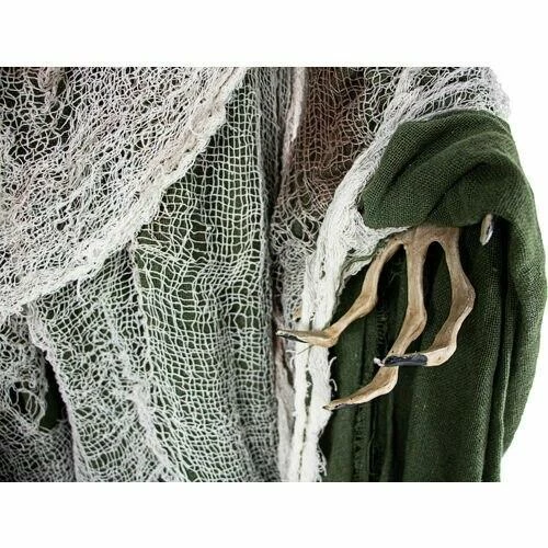 - Green gauze hooded cloak with white cobweb shroud