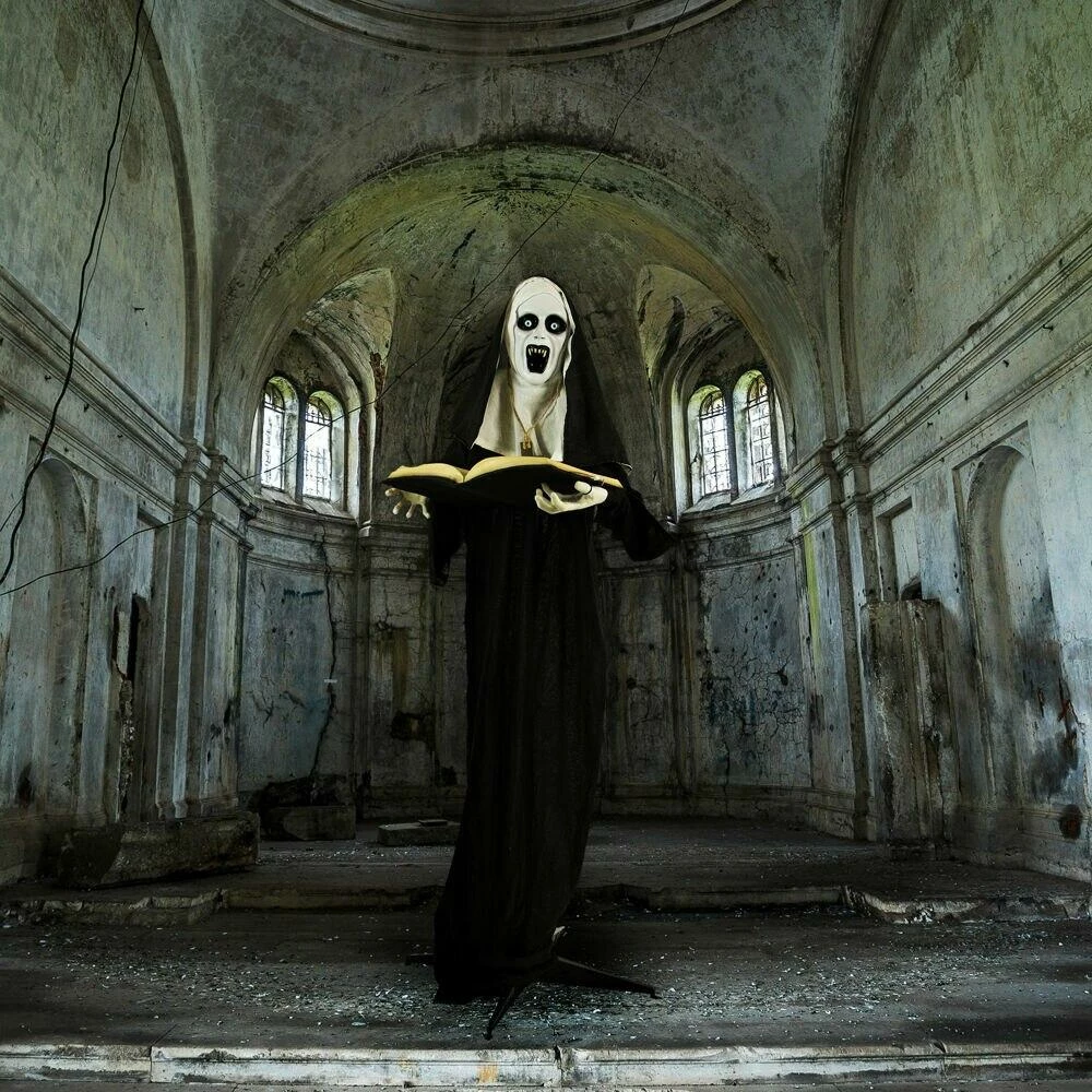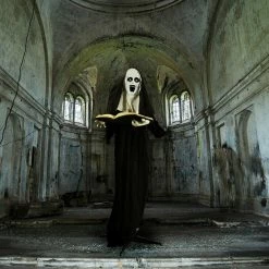 - 63 in. animatronic witch nun for indoor and covered outdoor displays