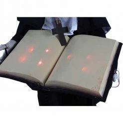 Be afraid. Be very afraid of Haunted Hill’s Curses and Cauldrons collection. These blood curdling creatures are sure to terrify any trick-or-treaters, co-workers, or customers. Prepare for an unholy Halloween with Sister Dreadful, the nun of your nightmares. After a life devoted to selfless work, Sister Dreadful returns each year, determined to enjoy an afterlife of sin. She releases evil laughter and spews witchcraft as her wide eyes light up a demonic green. The book clutched in her human-like hands glows red, illuminating the pages. Sister Dreadful’s most dreadful feature is her face. Her gaping black mouth reveals a fearsome set of fangs and her blue eyes are surrounded by dark circles, contrasting with her hauntingly pale skin. Even a nun outfit and cross cannot disguise the evil creature Sister Dreadful has become.
