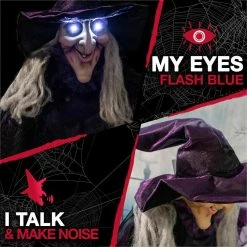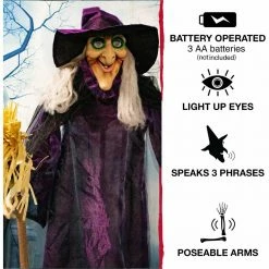 - Animated 6-ft. talking witch with a broomstick for a multitude of indoor and outdoor display ideas