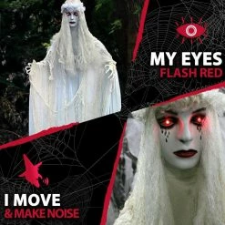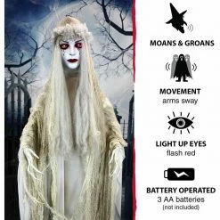 - 6.5 ft. animatronic haunted bride for indoor and covered outdoor display
