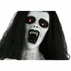 Be afraid. Be very afraid of Haunted Hill’s Broken-Hearted collection. These blood curdling creatures are sure to terrify any trick-or-treaters, co-workers, or customers. Hilga the Bridezilla is truly a menace. She has awaited her groom for years on end, refusing to accept he has fled. Hilga cries as twilight zone and circus music echo around her. She moans that she can’t find her bouquet. She wants to know if her hair, a mess of thick black tangles, looks nice. This is the happiest day of her life, she says. She needs everything to be? perfect. If Hilga’s haunting complaints weren’t off-putting enough, her light-up red eyes, glowing from deep within her dark eye sockets, should be enough to deter any wedding guests. Her arms and head move as she sobs and her skeleton hands, eerie white gown, and row of fangs are a horrifying sight to behold. It’s no wonder Hilga’s groom took off?