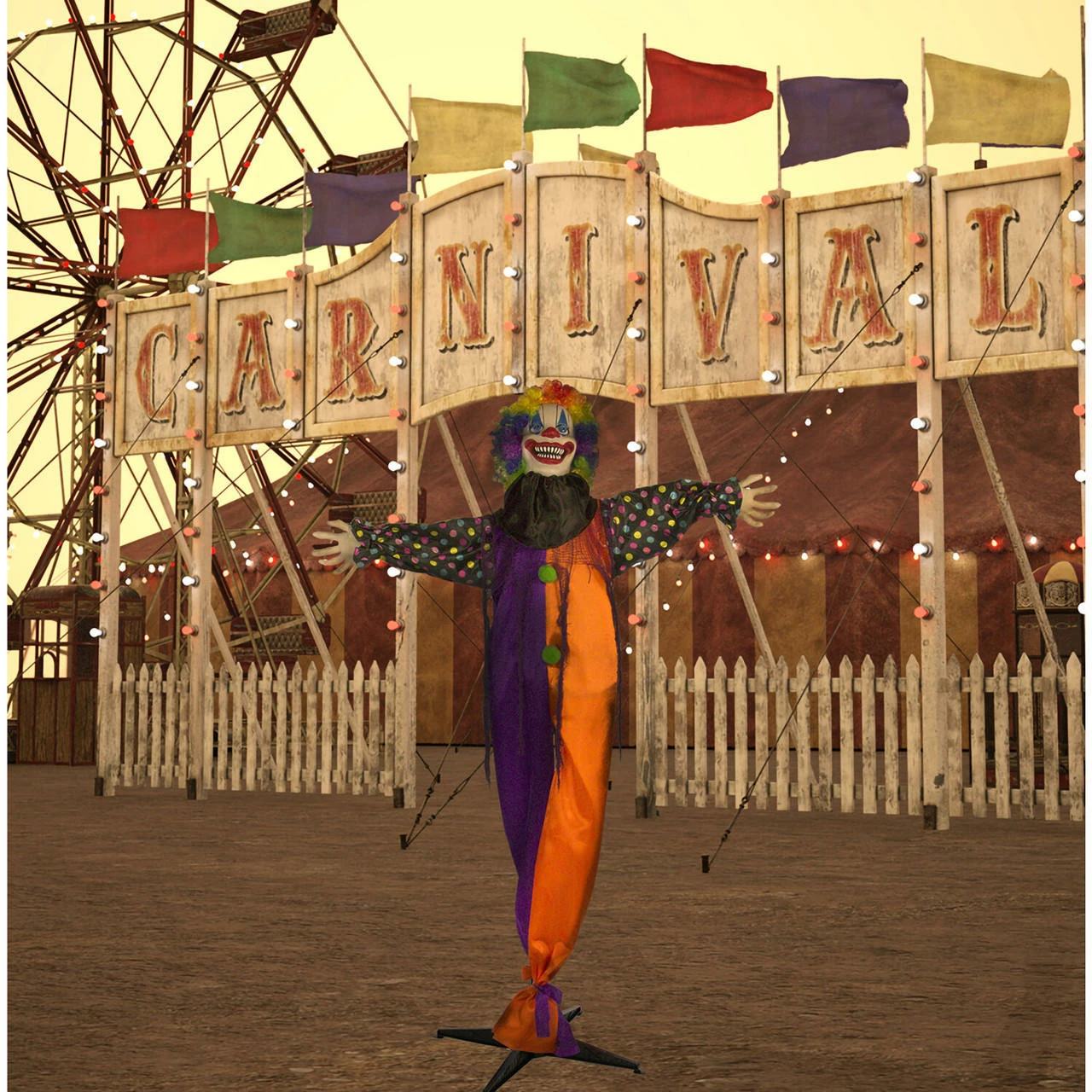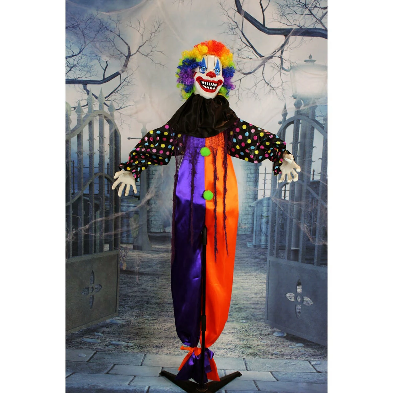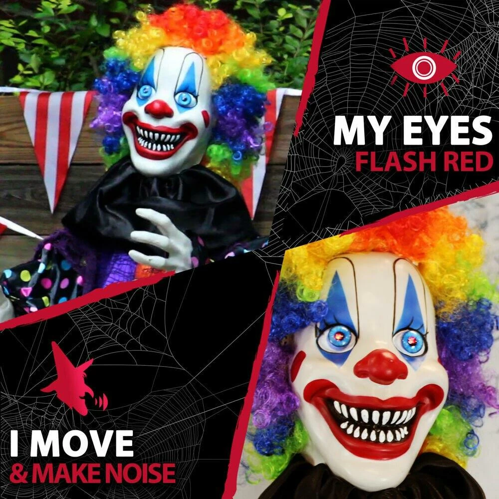 - 5.5 ft animatronic poseable clown for indoor and covered outdoor displays