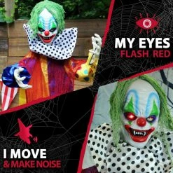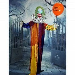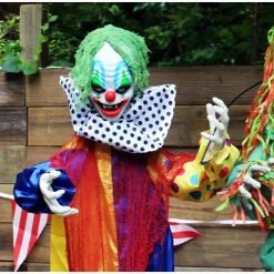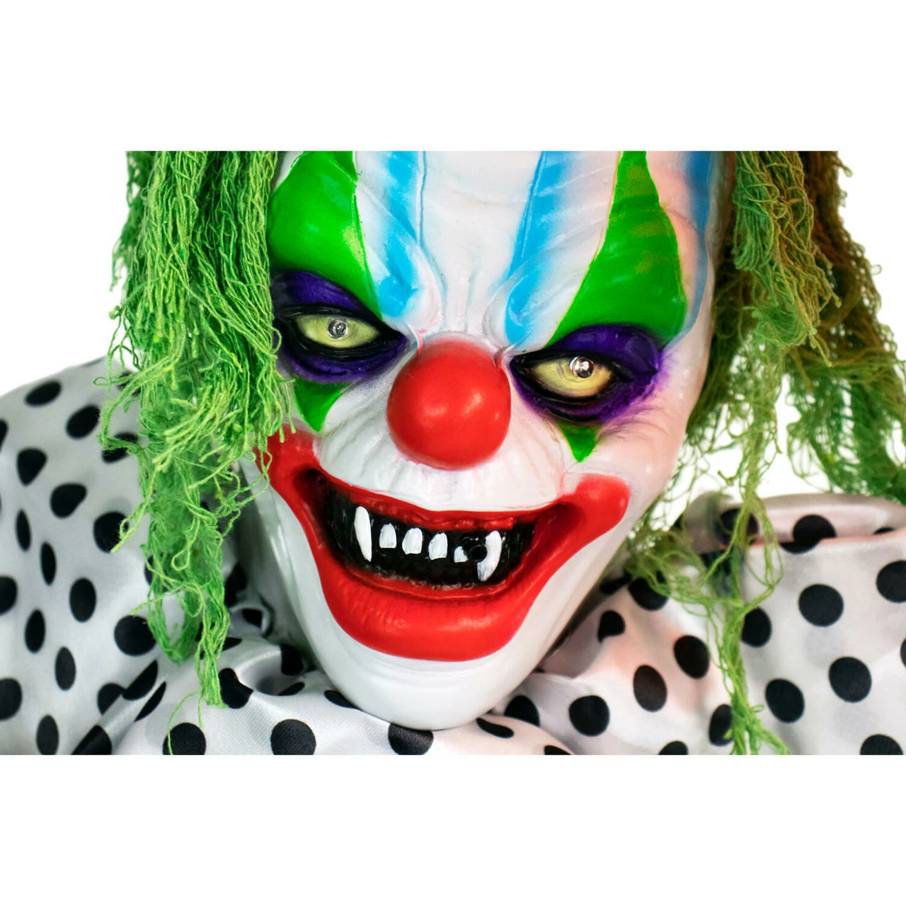 - 69 in. animatronic poseable clown for indoor and covered outdoor displays