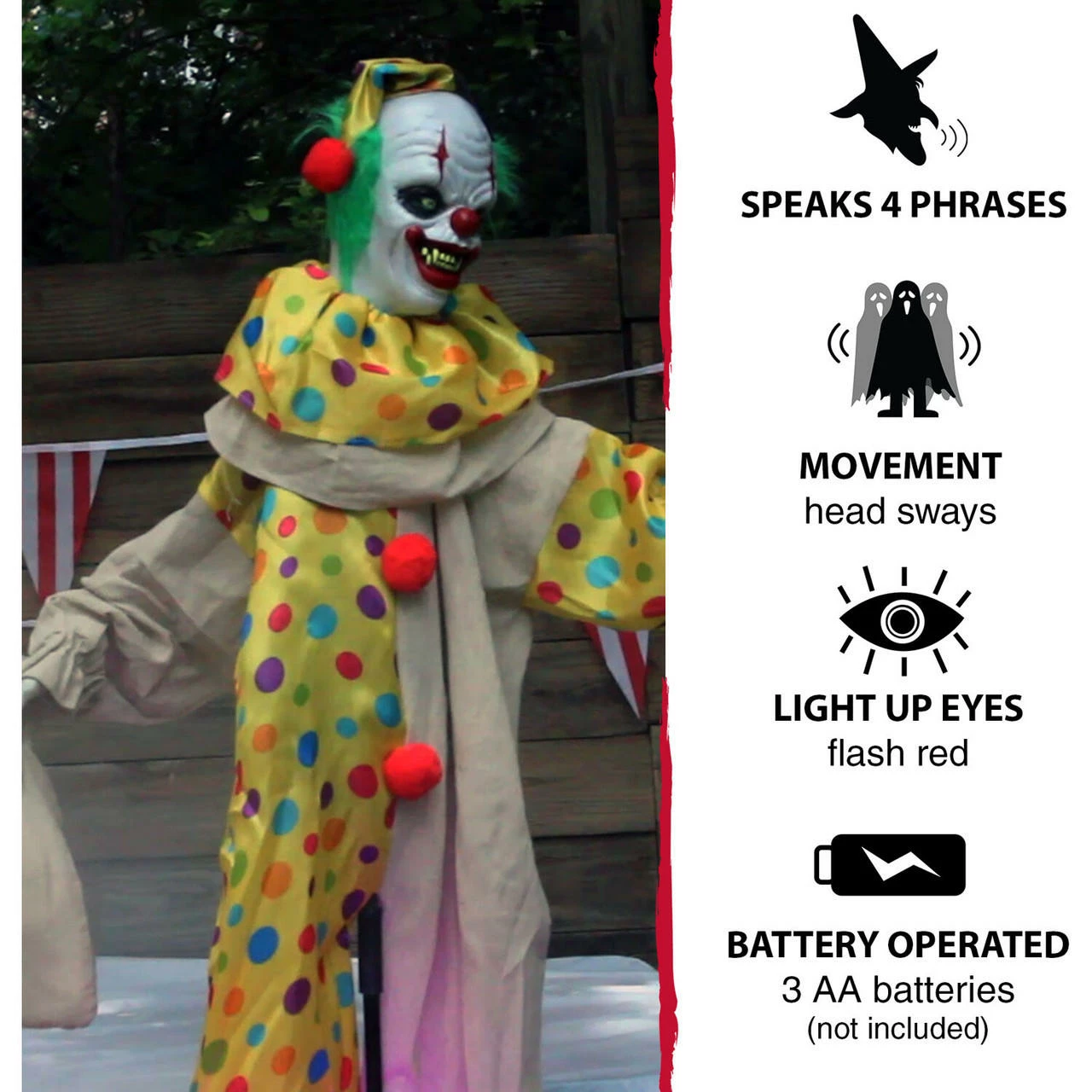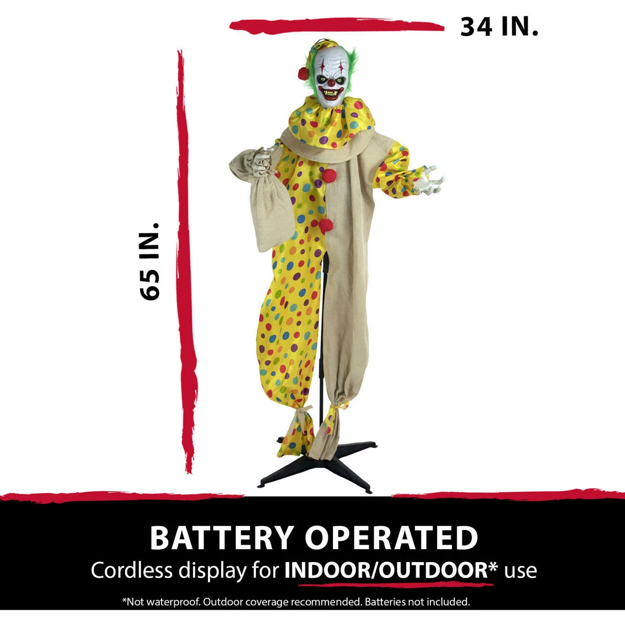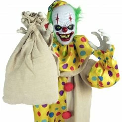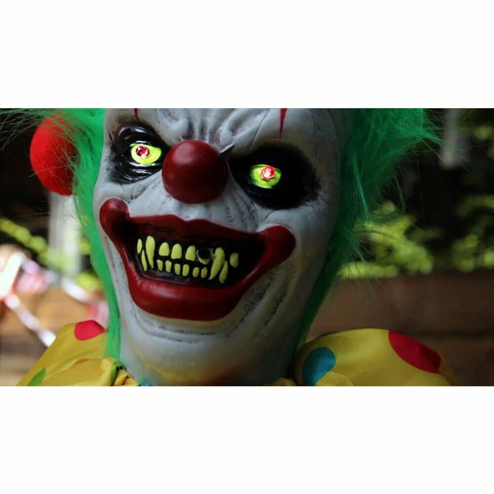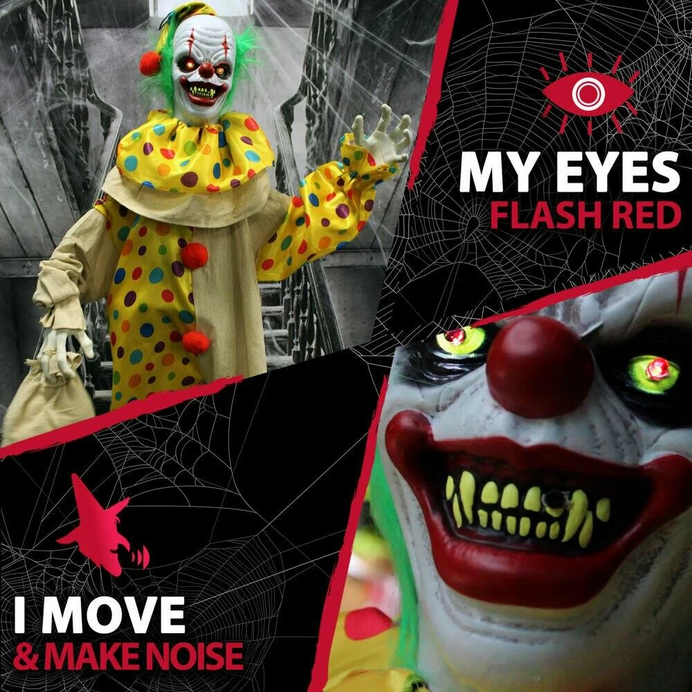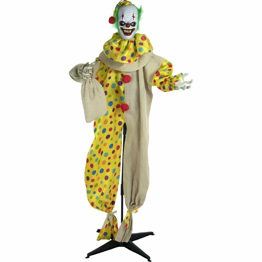 - 65 in animatronic poseable clown for indoor and covered outdoor displays