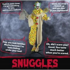 - Snuggles is touch activated head moves, he taunts victims, eyes flash an eerie red
