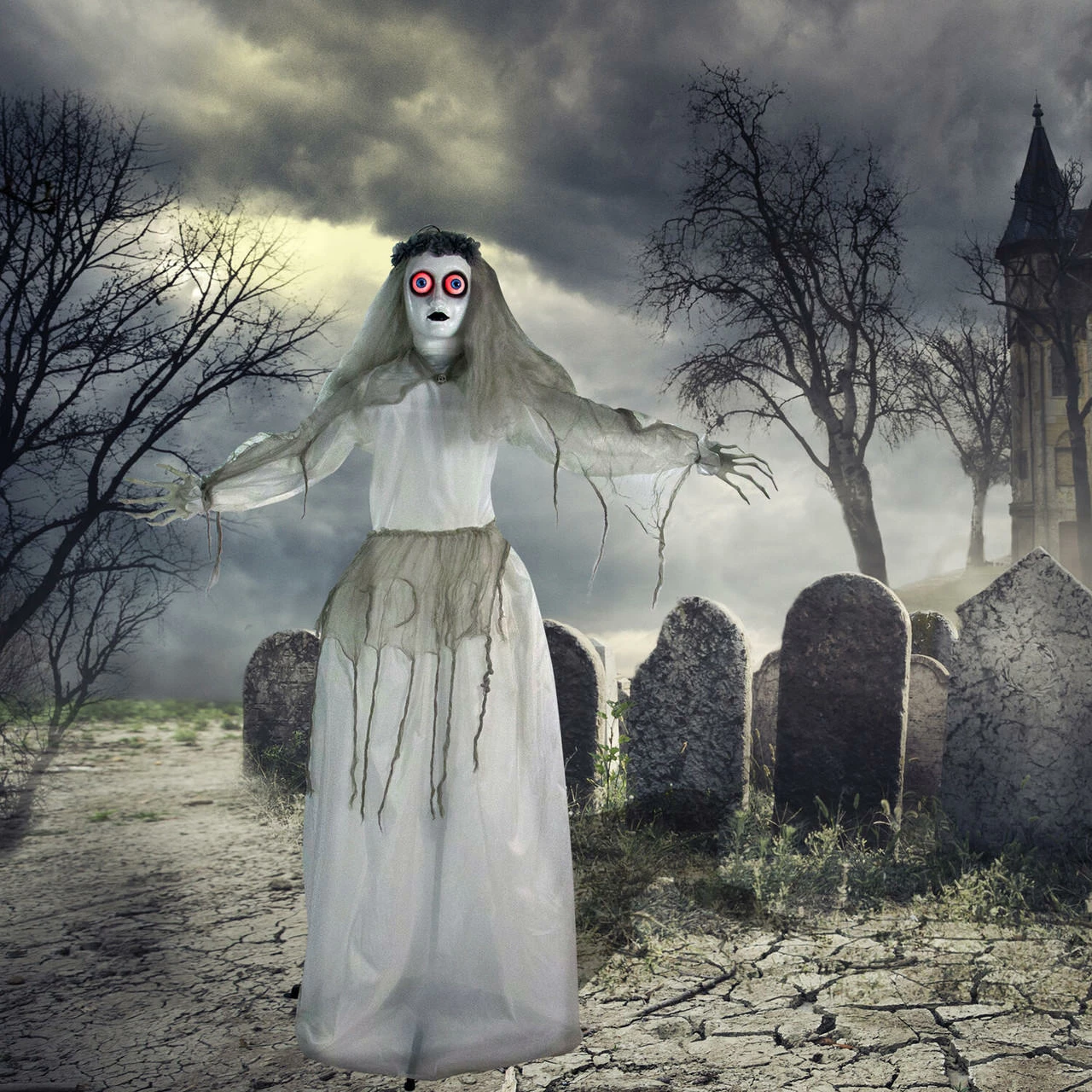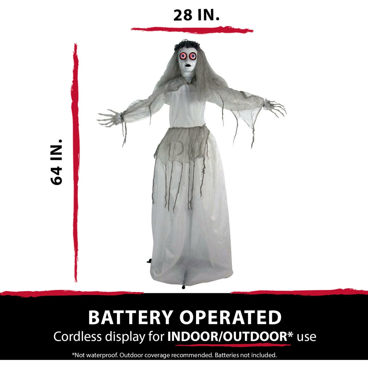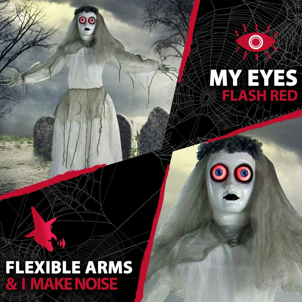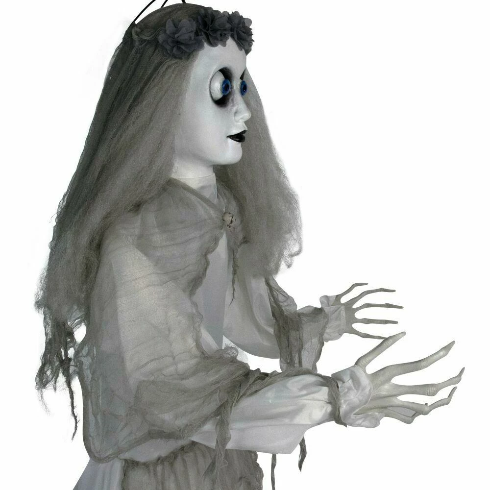 - 5 ft. animatronic haunted bride for indoor and covered outdoor display
