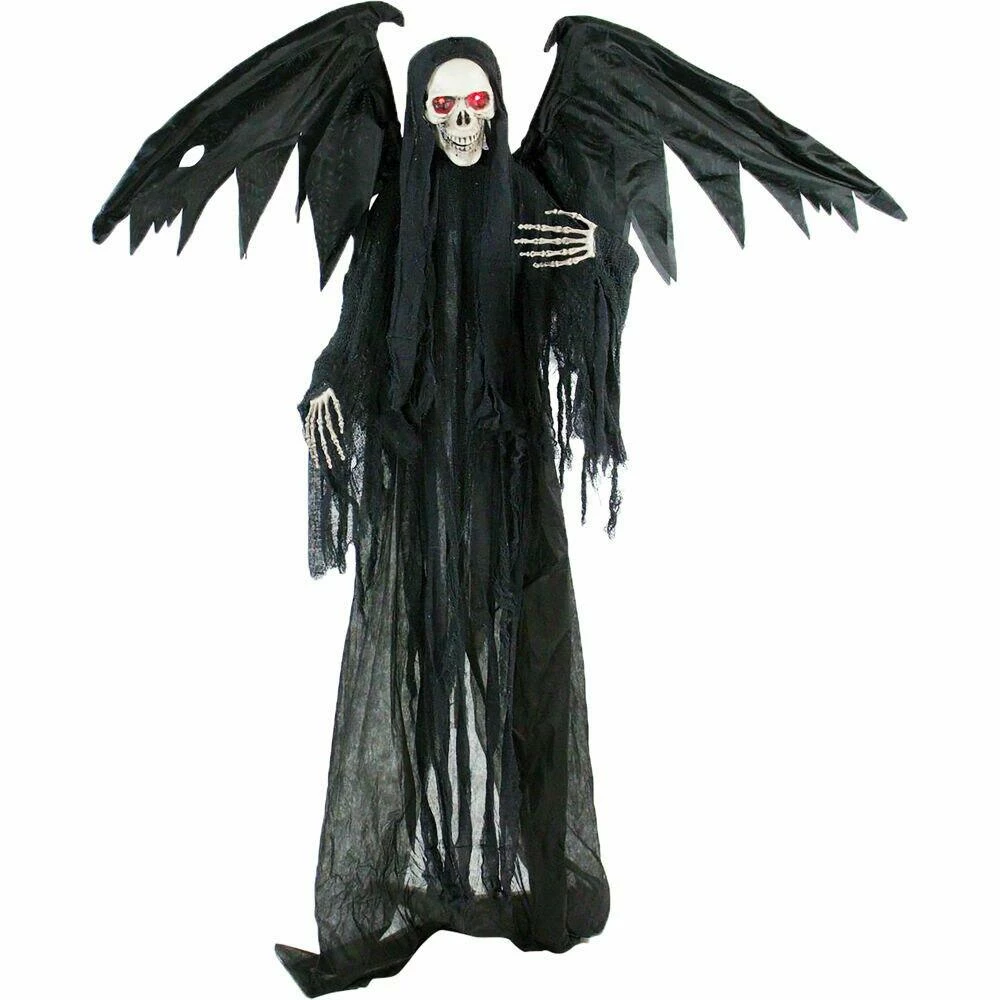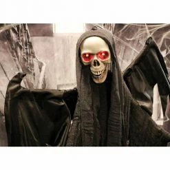 - 6 ft. animatronic reaper for indoor and covered outdoor display