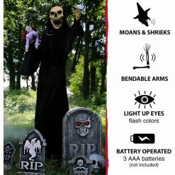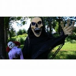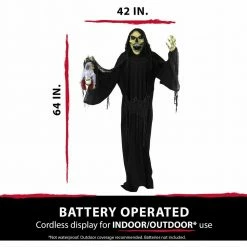 - 64 in. animatronic reaper for indoor and covered outdoor display