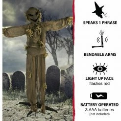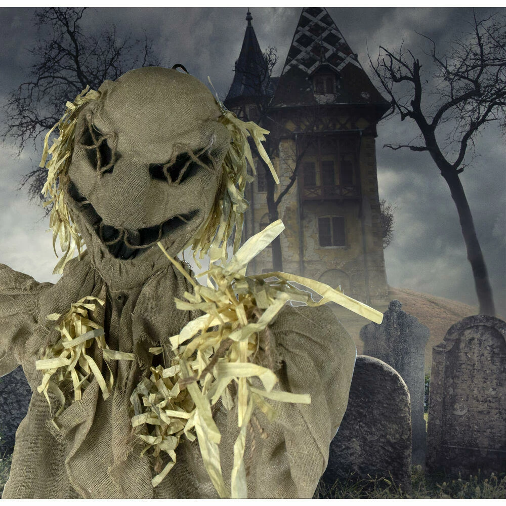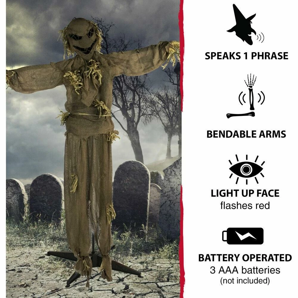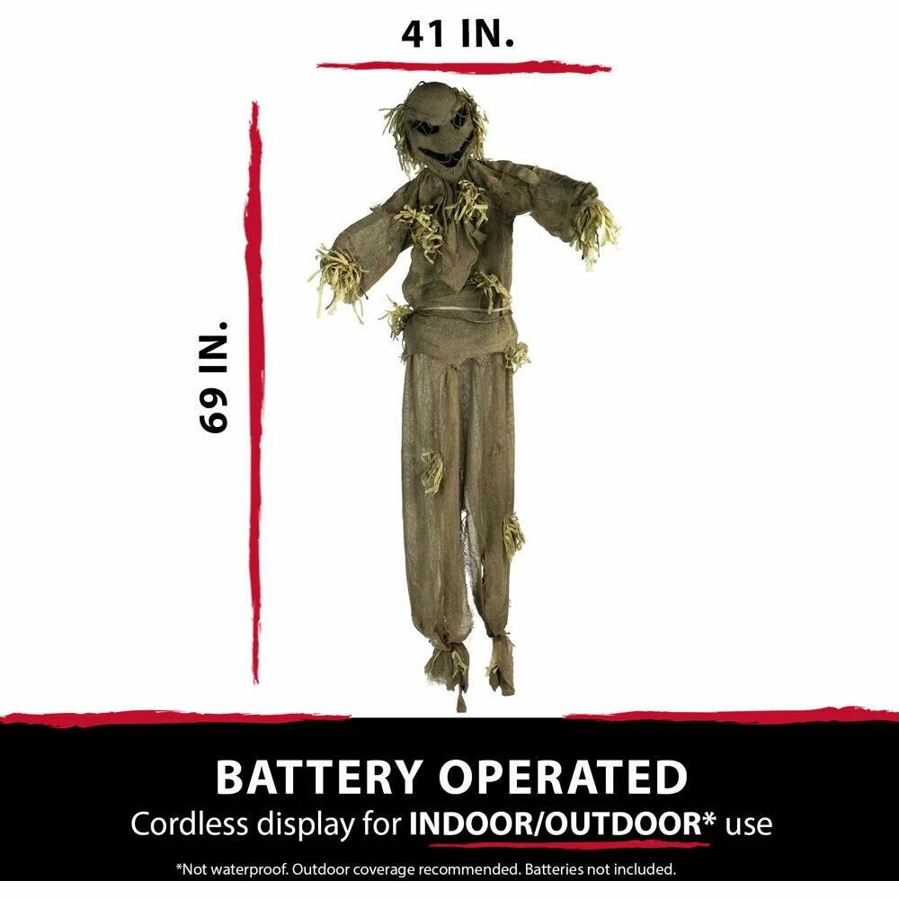 - 69 in. animatronic scarecrow for indoor or covered outdoor display