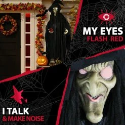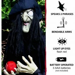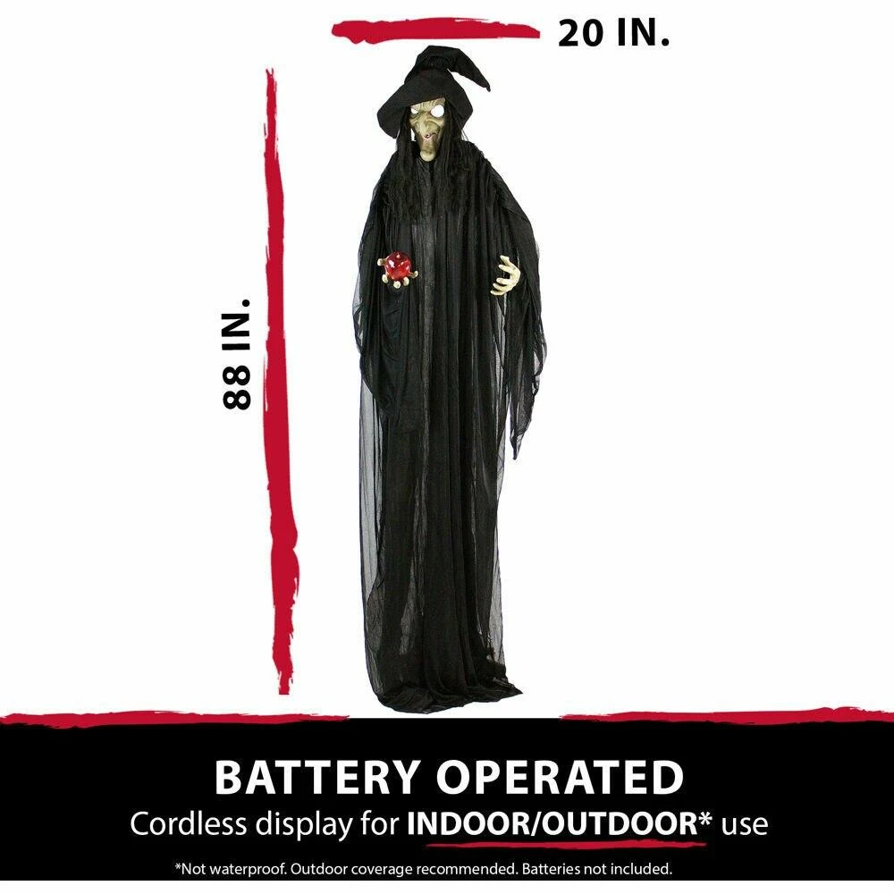 - 88 in. animatronic witch for indoor and covered outdoor display