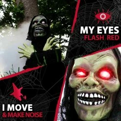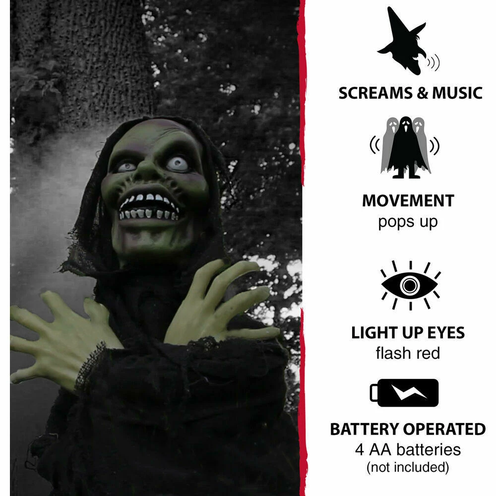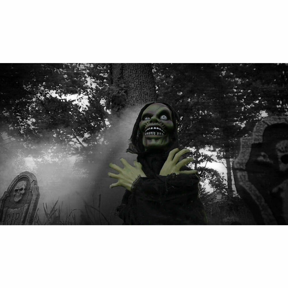 - 24 inch animatronic pop-up ghoul for indoor and covered outdoor display